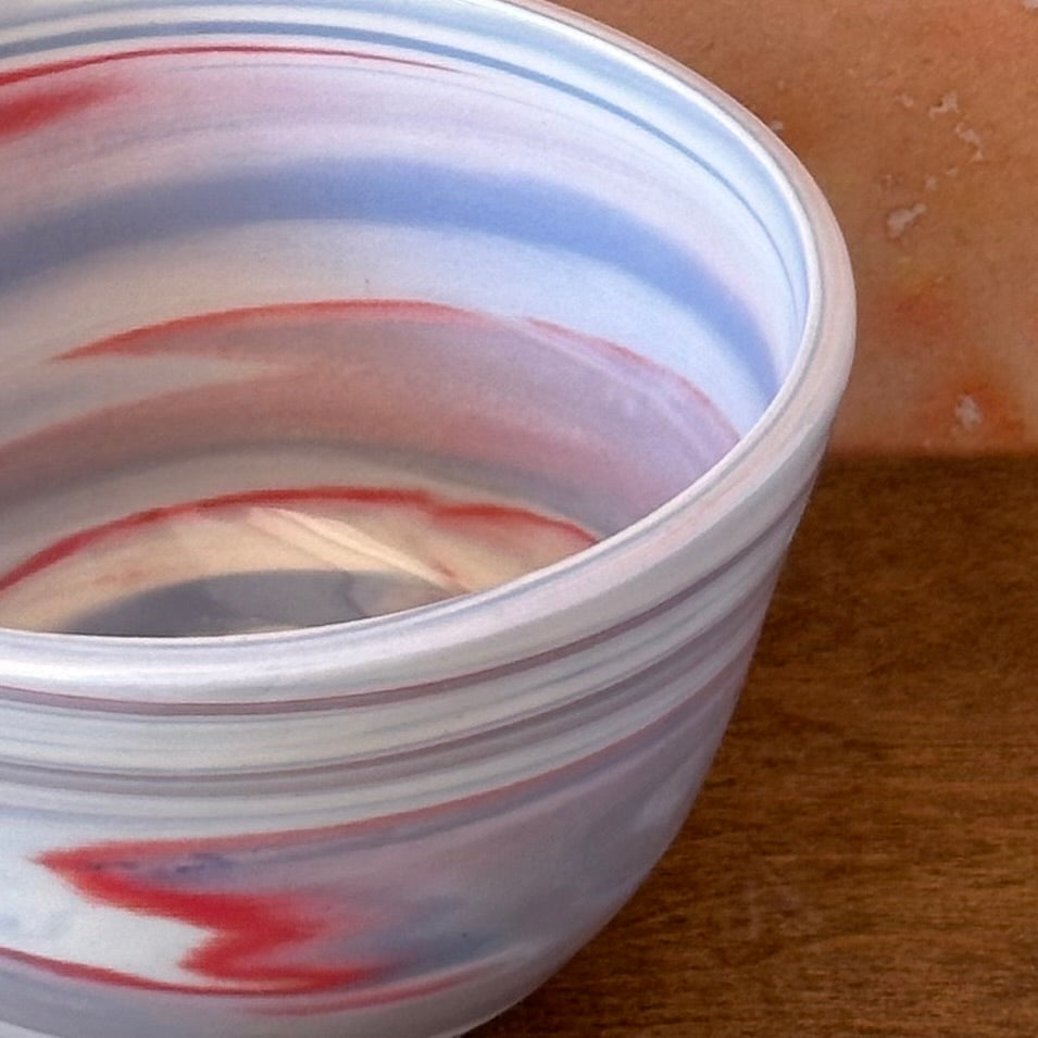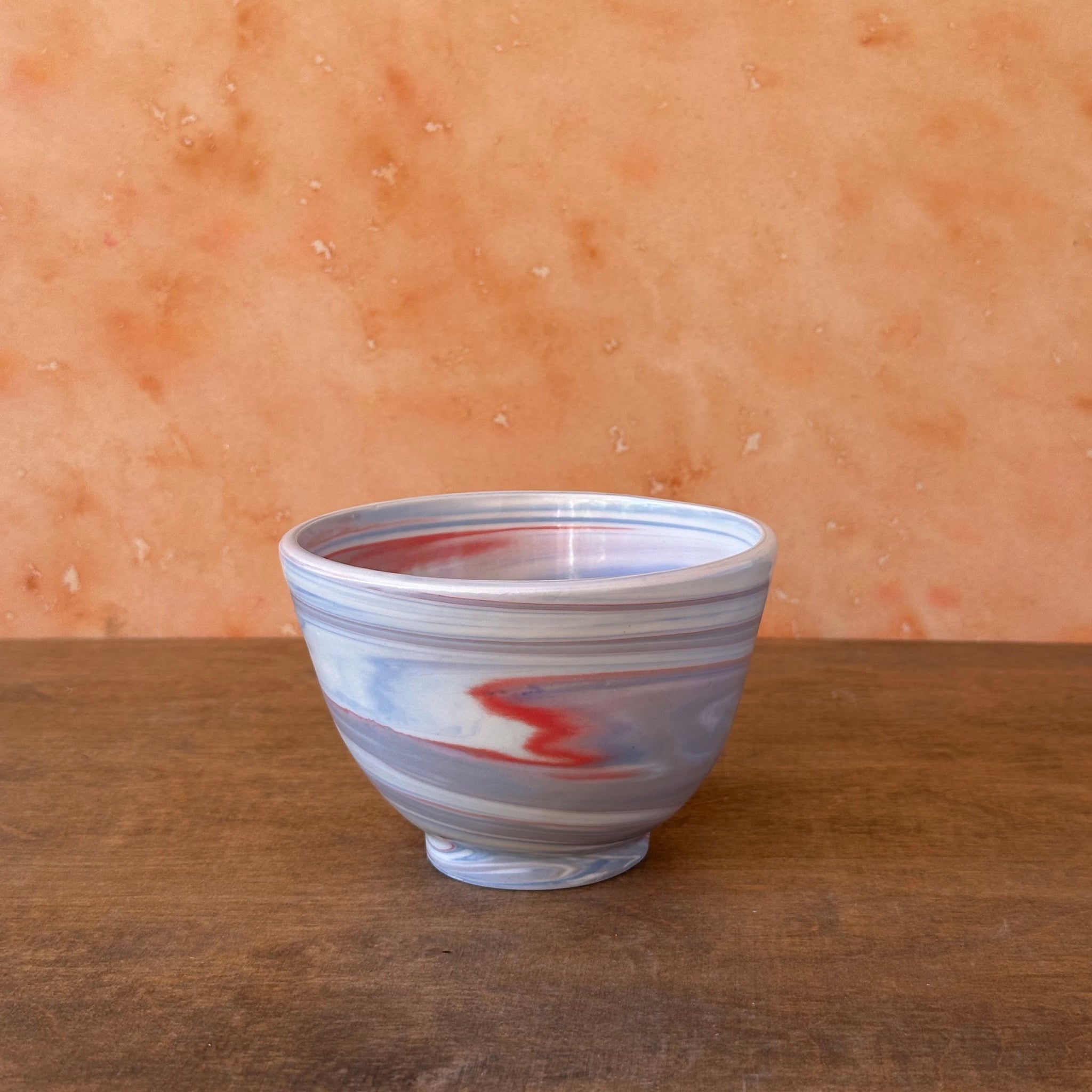 Small bowl created on the pottery wheel using colored porcelain clay, often called by the Japanese name "Neriage".